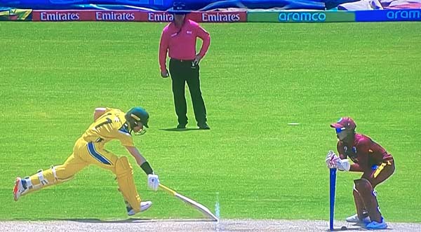 Ollie Peake run out by the smallest of margins
