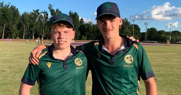 Rob O'Brien and Adam Leckey shared a double hundred stand as Ireland Under 19s belatedly got their World Cup preparations underway with a fine chase to beat Scotland by six wickets.