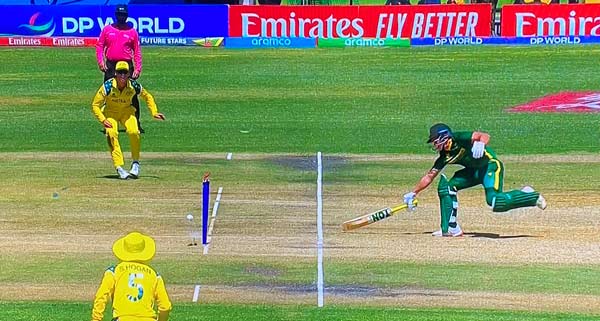 Two wickets with big googlies from Vigneshwaran Akash after an opening partnership of 96 for Sourth Africa. Jason Rowles comes down the pitch but holes out at long-on to give Chamika Heentigala his first wicket. A magnificent century from Jorich van Schalkwyk the highlight of what South Africa hope will be a winning score. Akash finishes with four wickets no one reading his mixture of legspin and googlies. Sri Lanka going full stem ahead in the chase, almost half way there in just twenty overs for the loss of only one wicket. Wekunagada chops on to end a partnership worth 143. Just a glimmer of hope for South Africa as Corne Botha finds the inside edge of Chamunditha's bat and a flying Phahlamohlaka holds a juggling catch. That will slow things up a bit, but Sri Lanka are well ahead of the asking rate. South Africa nibble another wicket, anothr diving catch behind and a second wicket for Michael Kruiskamp. Sri Lanka cruising to the win with just 30 runs required off the final 10 overs and end it with four overs to spare. South Africa finish a disappointing campaign with just the single win over Tanzania in the Group stage. Sri Lanka move into second place in the table but a win for Afghanistan over Ireland will see them into the semi-finals on NRR.