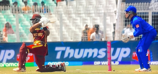 Shai Hope's innings the standout performance on a day when his side stuttered their way to a below par total at Eden Gardens. The Windies skipper with 6x4s and 4x6s in his 46 ball stay adding 64 with Roston Chase for the third wicket. Italy happy to have contained the Windies as well as they did, two wickets for Ben Manenti's off spin and two for the legspin/googlies of Crishan Kalugamage. Azurri openers the Mosca brothers boh out inside the first three overs, Justin for just 2 and Anthony for 19 (1x6, 2x6), a wicket each for Matthew Forde and Akeal Hoseain. The Powerplay finishes at 37-3, a second wicket for Forde as Syed Naqvi slices a catch off Forde to point. Windies nibble out Harry Manenti cheaply to be favourites at the halfway stage - JJ Smuts and Grant Stewart follow likewise, so all on Ben Manenti now it would seem. with the required rate now over twelve an over. Shamar Joseph mops up the tail as Italy lost their last five wickets for 20 runs in 3 overs. Their thrilling losing chase against England and ten wicket win over Nepal now distant memories as they will once again have to hit the qualification trail.