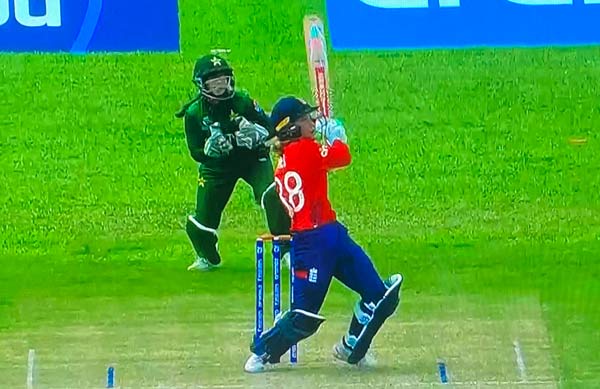 England slumped to 34/4 in their chase of Pakistan's modest 66. Two wickets for Mahnoor Zeb, a left-arm spinner who may be worth a second look, but England skipper Abigale Norgrove and keeper Katie Jones eased to the win Jones finishing in style with a maximum off Zeb.