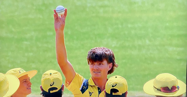 A solid batting effort by Ireland having been put in by defending champions Australia. Freddie Ogilby laid the foundations for a decent total with a solid 49 adding 36 with James West (11) and 37 with Seb Dijkstra (12). Top-scorer was Rob O'Brien who accelerated nicely to make 79 (9 fours) as Pete Johnston's side finally broke the shackles in the last eight overs plundering 76 runs to end on 235 for 7. There were cameos too from Adam Leckey (22), as well as Marko Bates (14) and Ollie Riley - the latter two each hitting the only sixes of the Ireland innings. Will it be enough? Probably not against one of the tournament favourites. At drinks, Australia have made a strong start reaching 95 for 1 (15). Reuben Wilson with the sole success, but Ireland need much more and quickly of they are to fight back in the contest, Dropped chance as Ogilby spills one from Wilson after the drinks break. Steven Hogan reaches his half century from 50 balls (6 fours, 1 six) and looks a real quality player. He and Nitesh Samuel have added 102 and counting. All very one-sided at the minute as the Aussies race to 153 for 1 at the midway point. Riley drops a return catch from Hogan on 75, while Wilson drops the same player on 82 off Leckey, but it won't affect the result. Ireland heads dropping and it's all gone very quiet in the field. Hundred for Hogan from 97 balls (10 fours,1 six). Just 40 needed from 18 overs at the second drinks break. Game long over as a contest before Hogan gives it away, a skier to keeper Ogilby. Oliver Peake, fresh from the Big Bash comes to the crease and ends the game with a boundary from a free-hit. The partnership between Hogan and Samuel was worth 186 - easy pickings with little threat from the Irish bowlers.