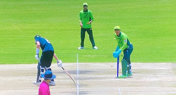 A rain interruption after 17.2 overs of the Bangladesh chase looked as if it could be a case of points shared in this emotionally charged encounter. But in the end play re-started in drizzle with Bangladesh needing 75 in 11.4 overs. All sorts of time wasting going on and the cameras showing the Indian coaching staff as much as the players. Bangladesh falling into the trap of trying to hit sixes when only needing 7 an over come up 18 runs short. Nice to see the handshakes that were missing at the Toss as the teams leave the pitch.
