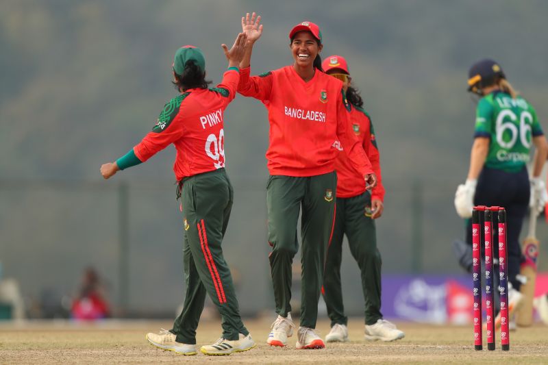 Bangladesh celebrate as Gaby Lewis departs. (ICC)